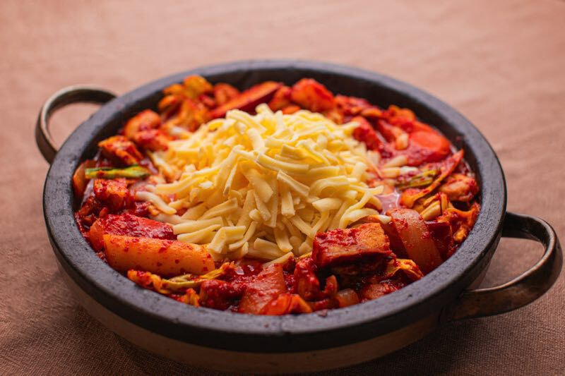 お馴染みのチャプチェ・トッポギからチーズダッカルビ。